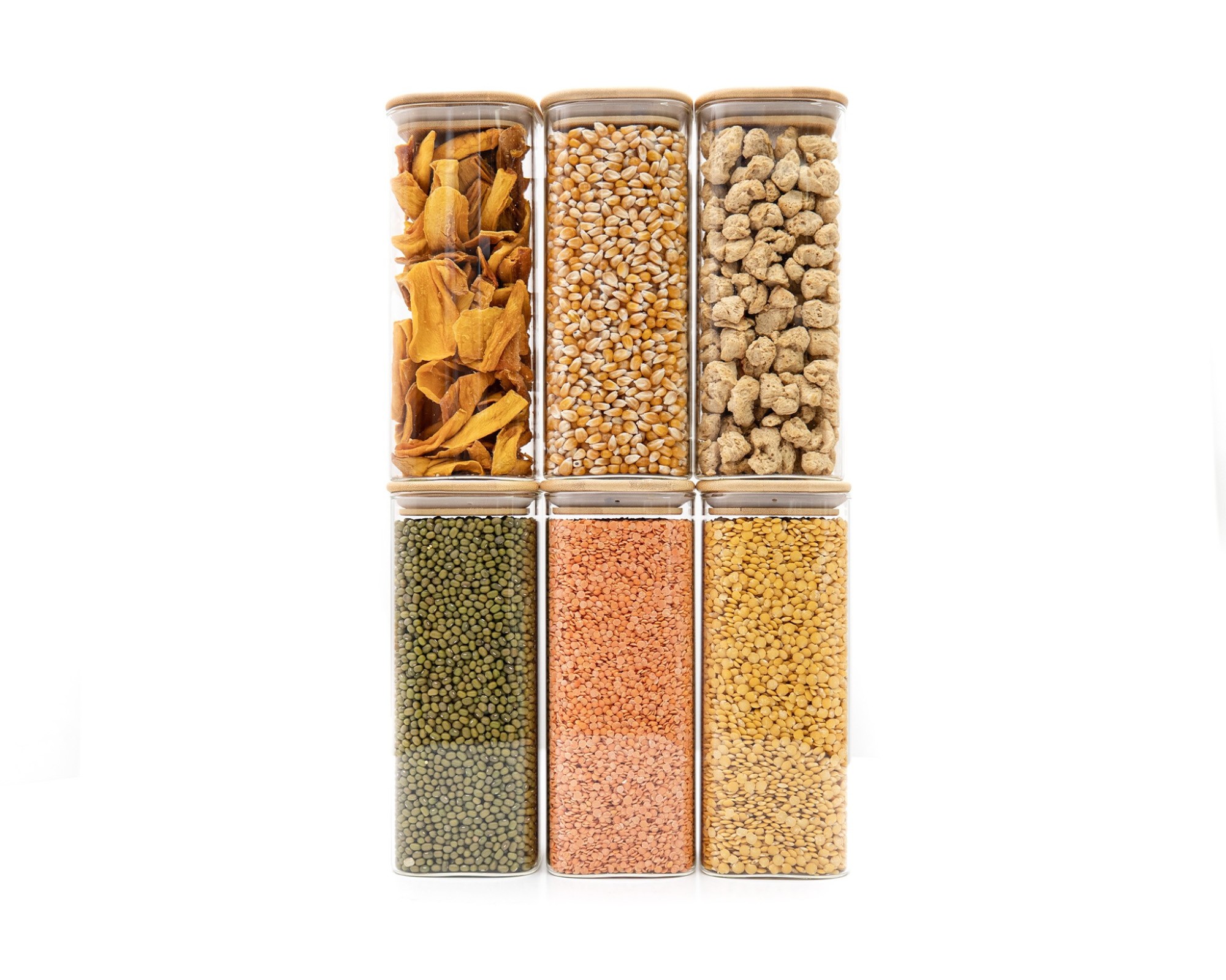 • Vorratsgläser aus Glas mit quadratischem Bambusdeckel