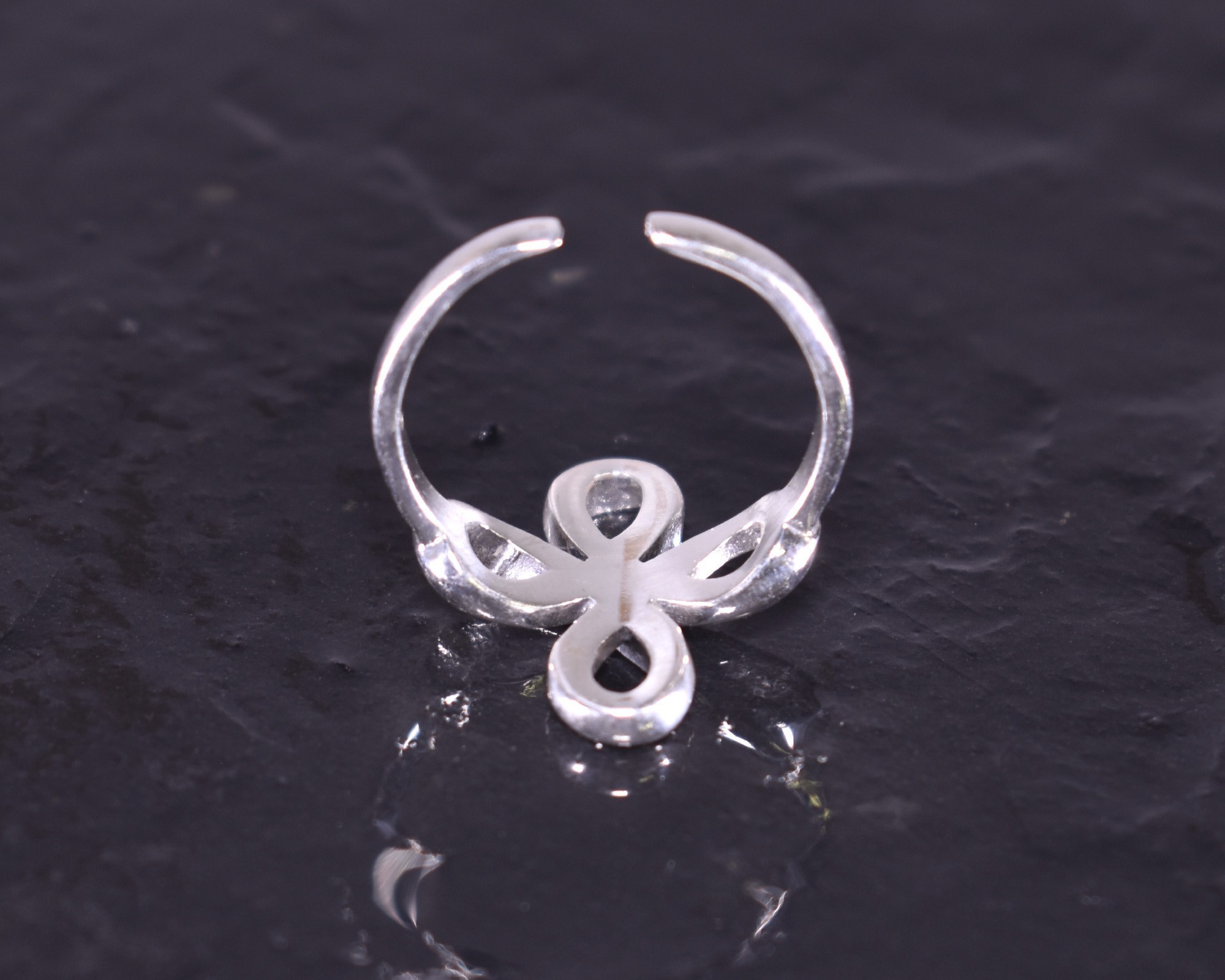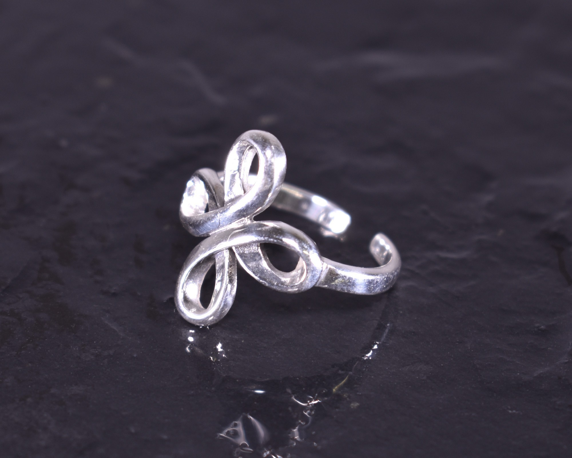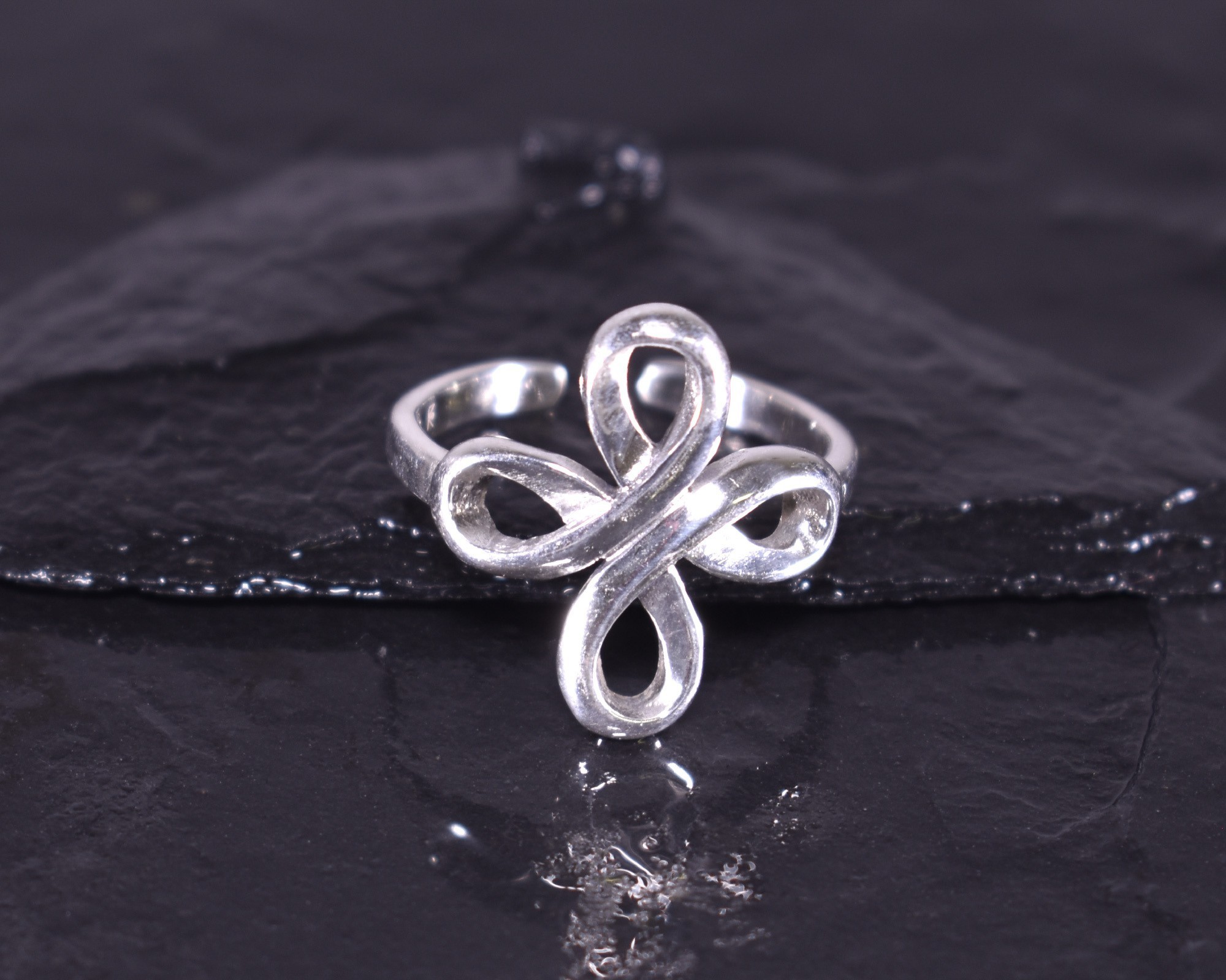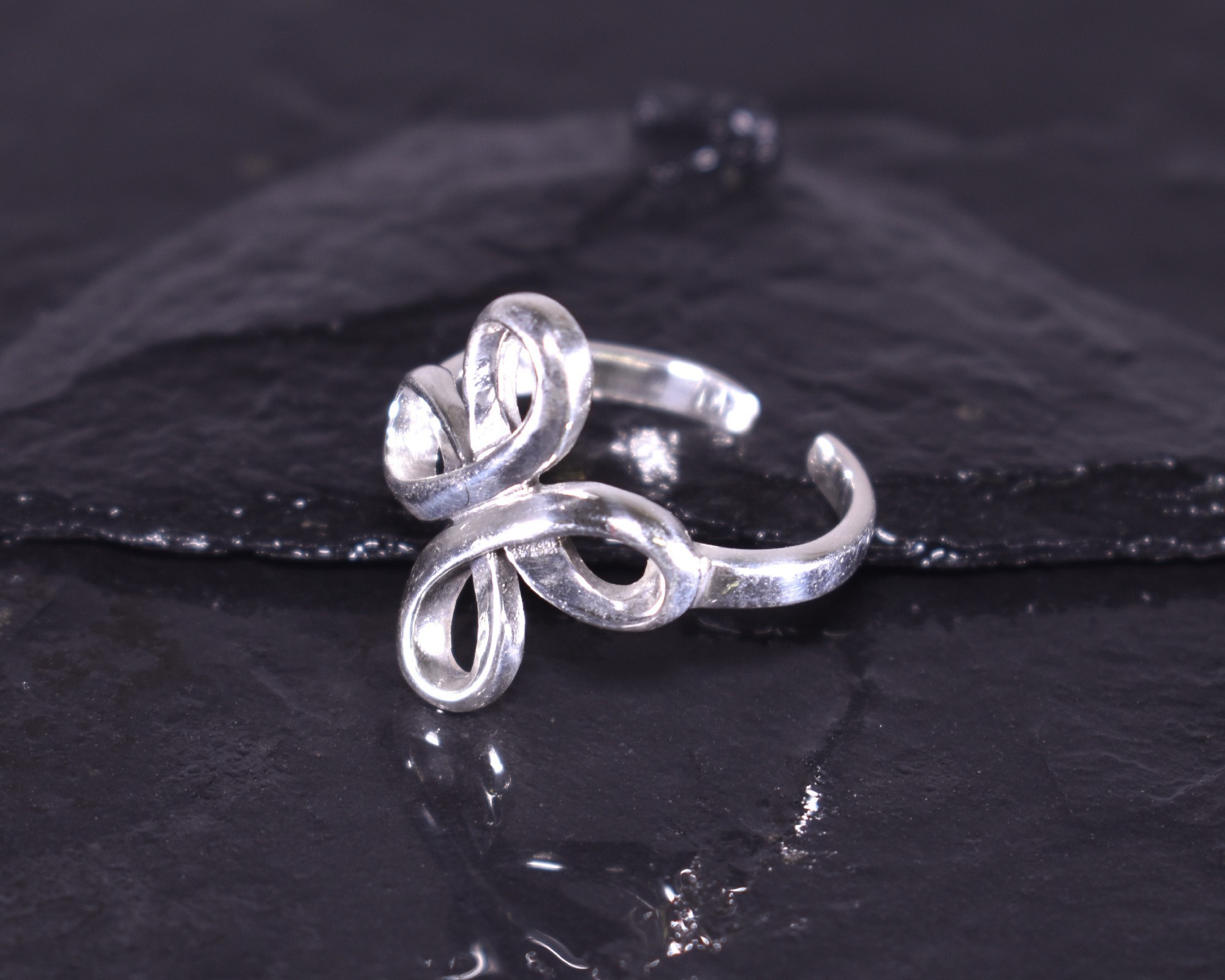 G lücksbringer. Dieser offene Silberring erinnert an ein vierblättriges Kleeblatt. Die elegante in einem Schwung gezogene Form bildet das Motiv des Schmuckstückes. Die glattpolierte Oberfläche unterstützt das feine Design. Das ideale Geschenk.