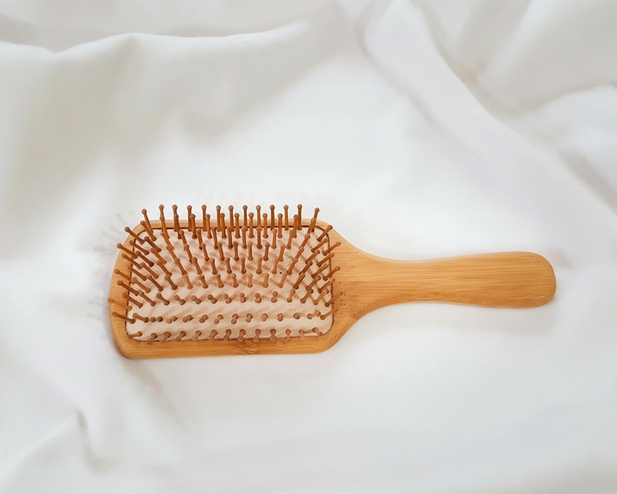 La brosse à cheveux se compose de bois de bambou, de poils en bambou et de caoutchouc naturel. Le bambou a été traité avec une huile naturelle.