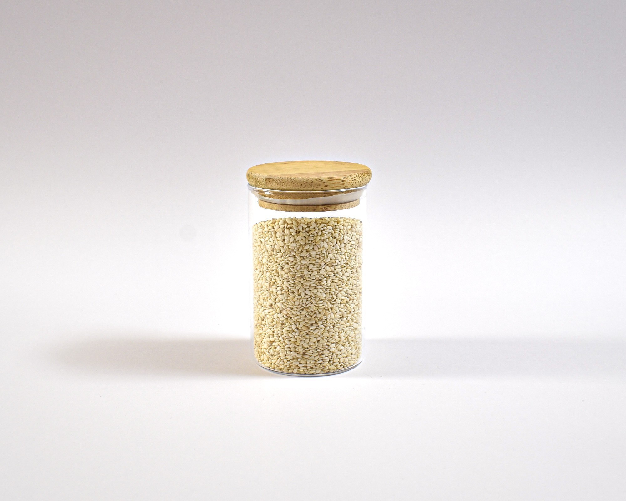 Verre de rangement étroit 10 cm de couvercle de bambou de haut 10