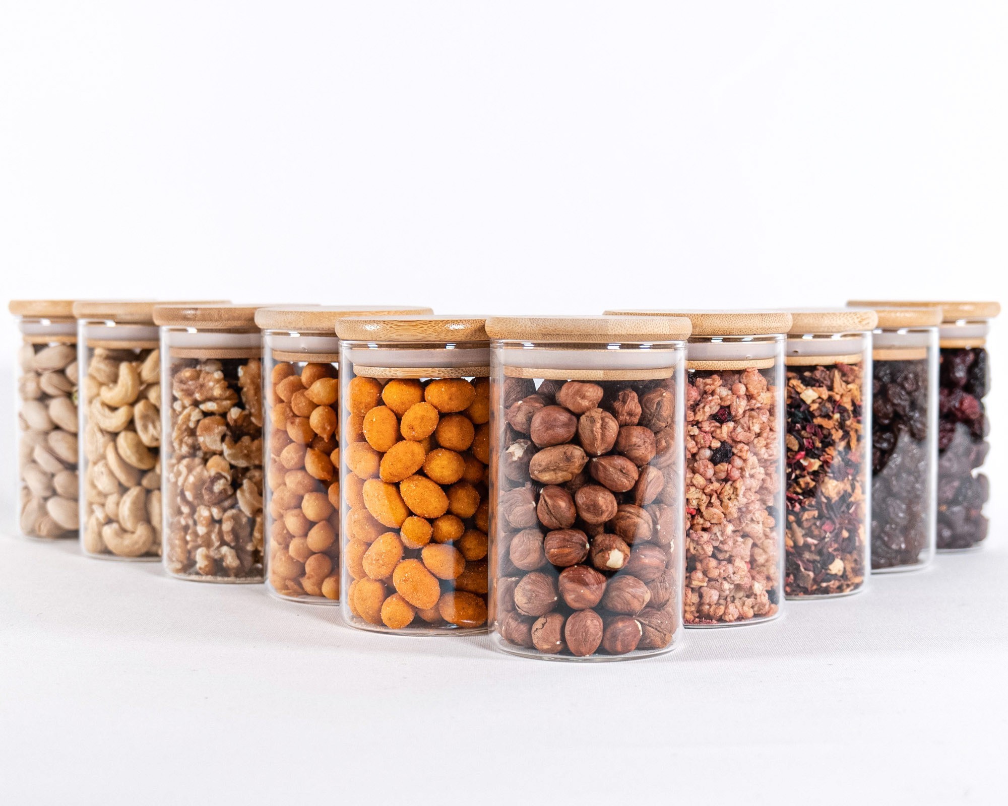 Il ces lunettes de rangement étroites (hauteur: 10 cm, quantité de remplissage: 270 ml) vous pouvez stocker des noix, des thés, des herbes et des épices d'une manière économique.