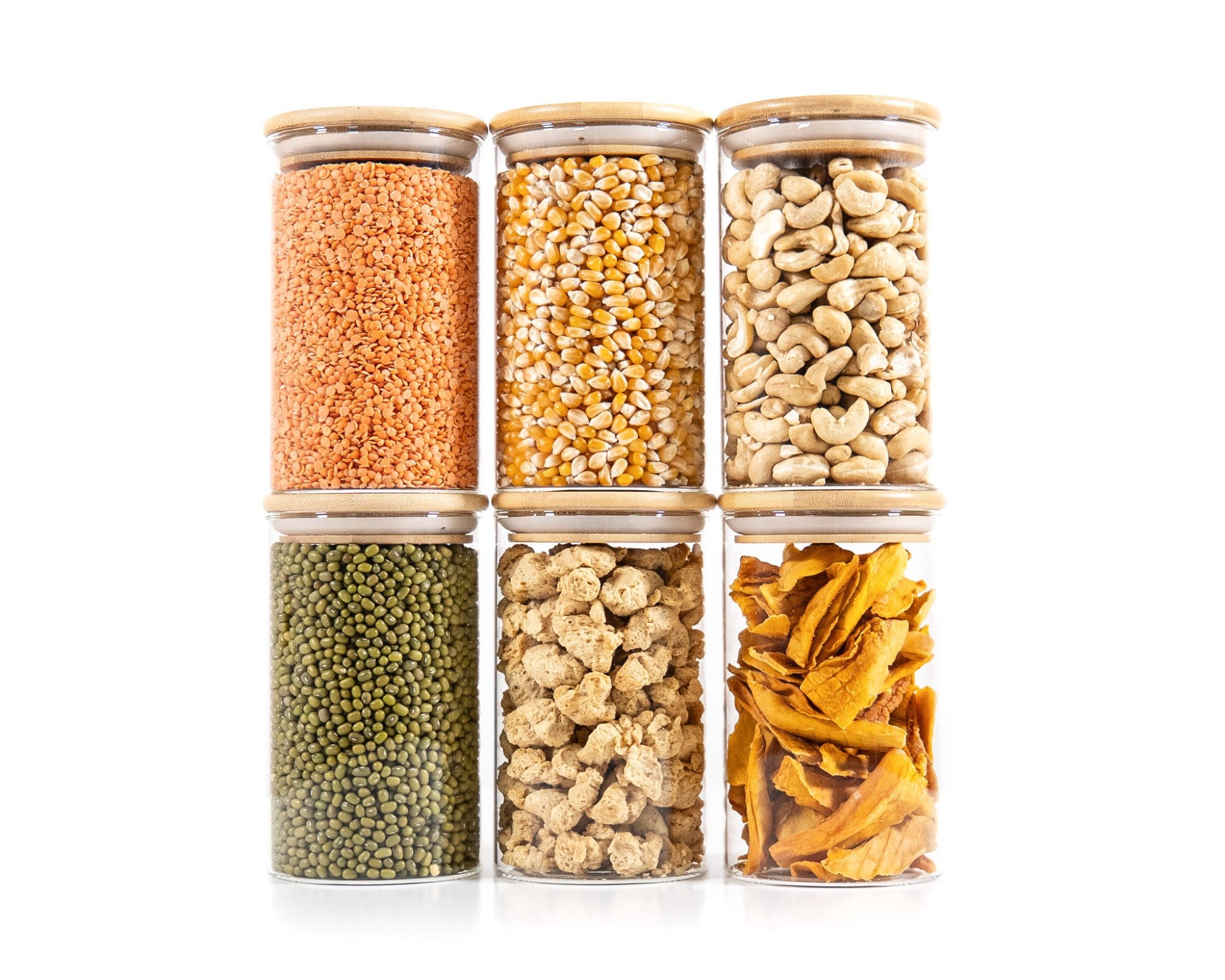 Le récipient en verre est en verre borosilicaté, le couvercle est en bois de bambou avec un anneau en silicone hermétique.