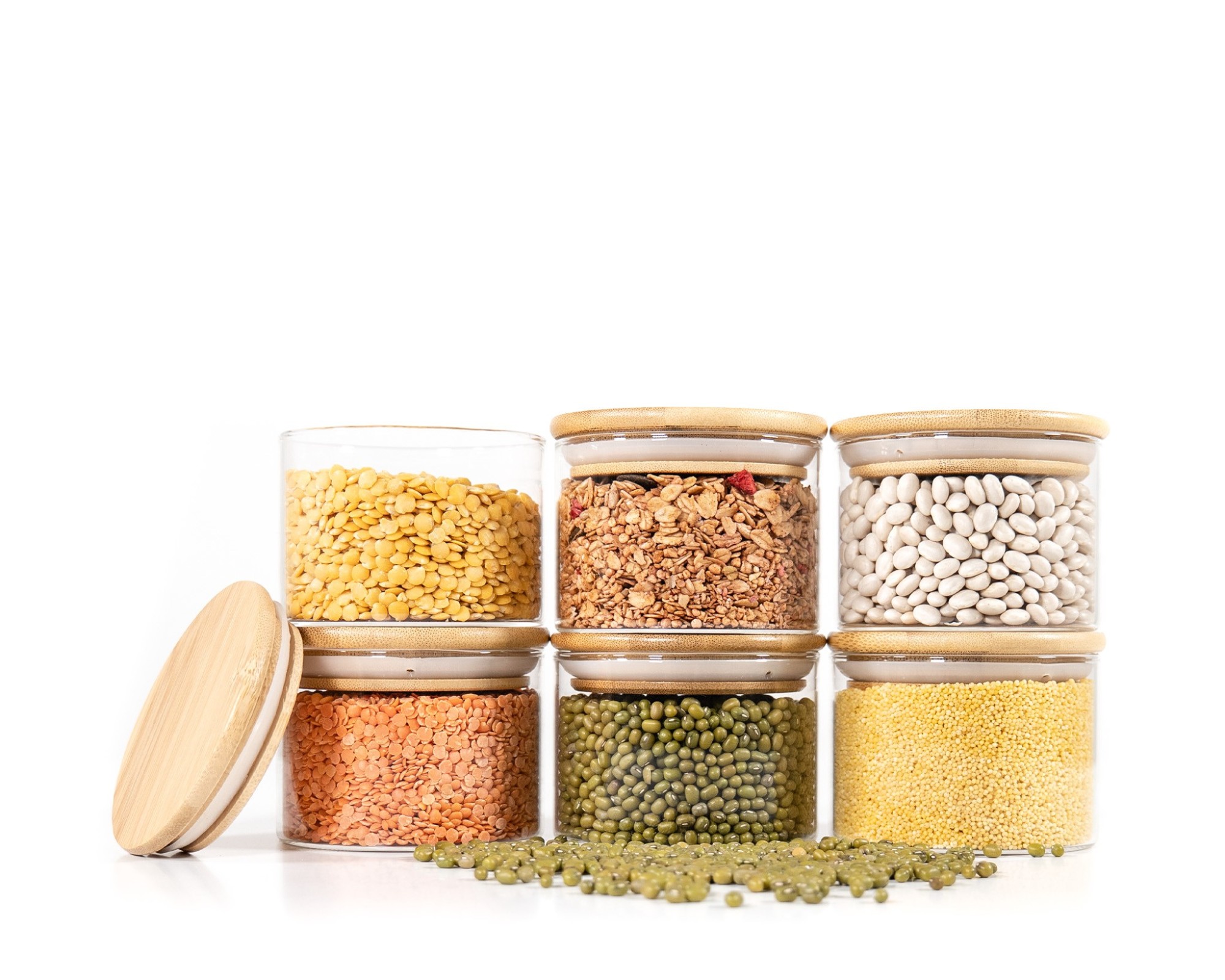 Pour tous les aliments stockés à sec, tels que : céréales, graines, noix, épices, pâtes, herbes, légumineuses, muesli, café, confiseries, etc. Surtout avec les épices, évitez la lumière directe...