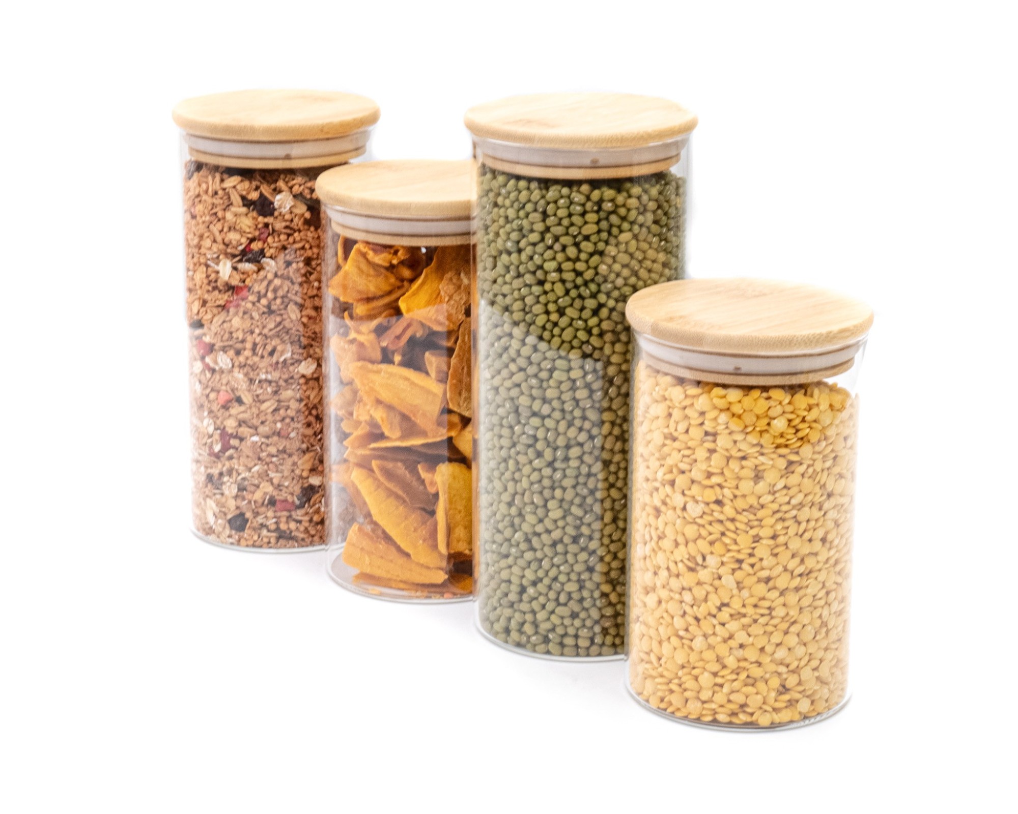 Le récipient en verre est en verre borosilicaté, le couvercle est en bois de bambou avec un anneau en silicone hermétique.