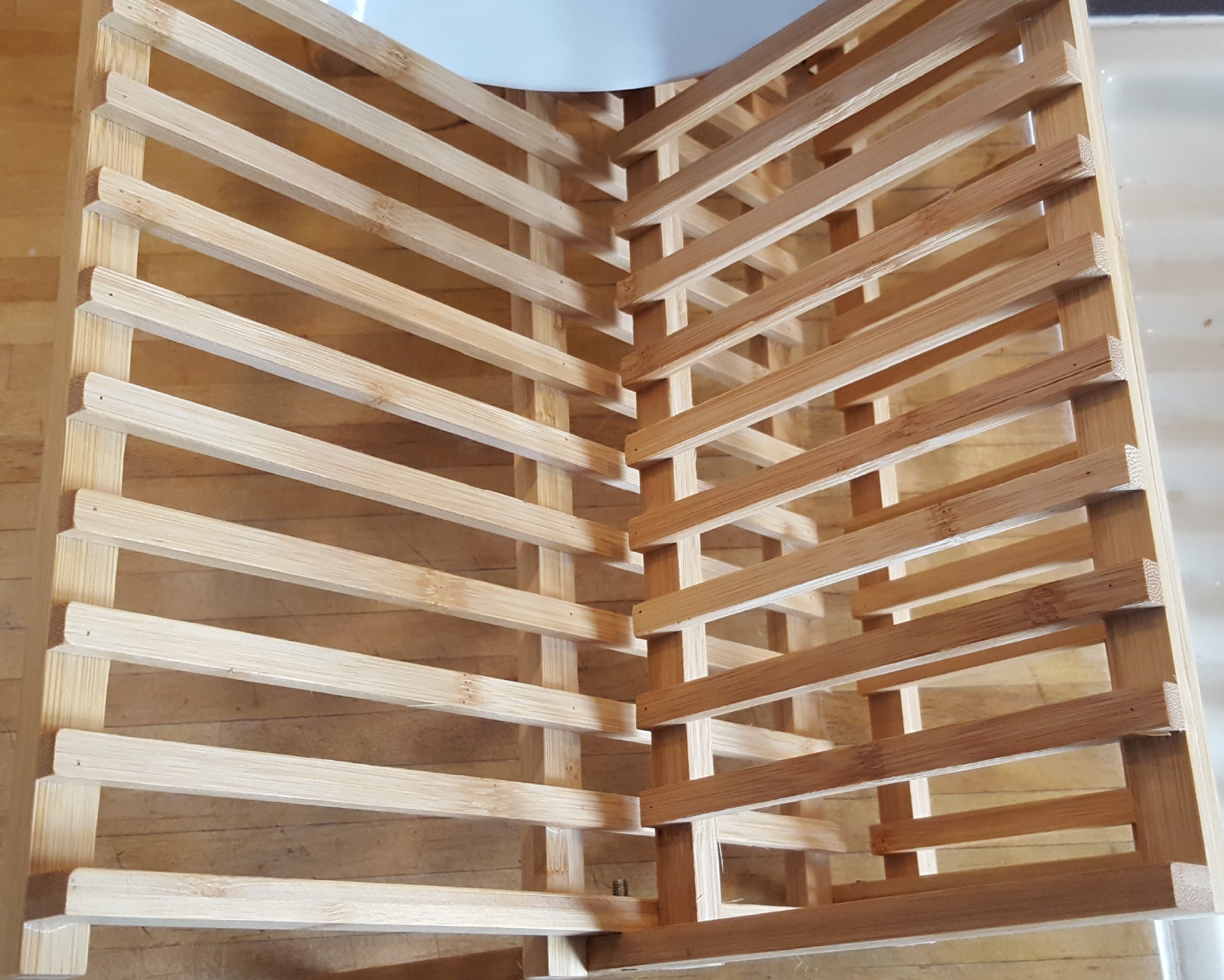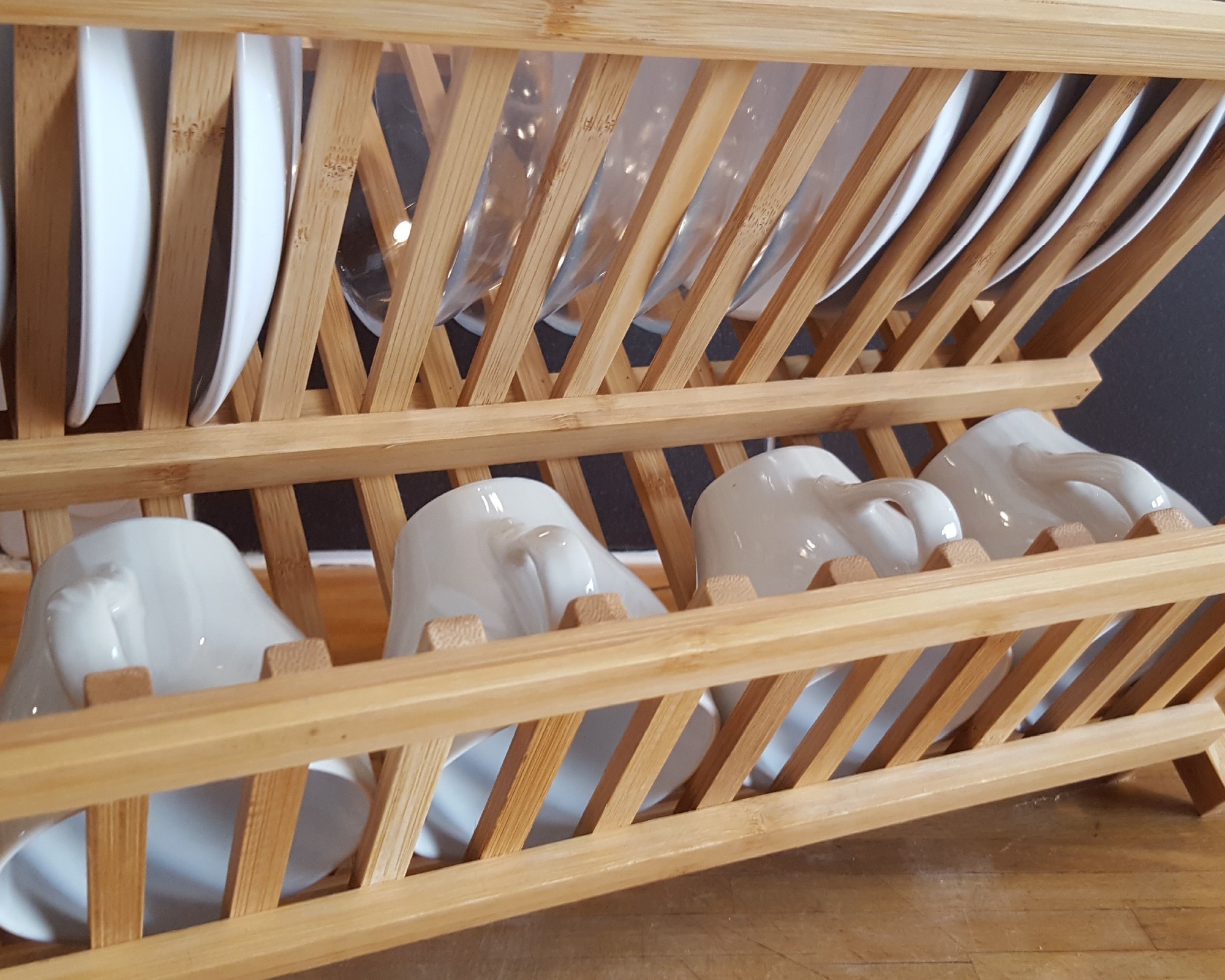 Das Abtropfgestell ist eine echte Erleichterung in der Küche. Es passt perfekt neben unser Waschbecken und nimmt nicht zu viel Platz weg. Besonders gut gefällt uns, dass es zusammenklappbar ist und so leicht verstaut werden kann. Auch optisch macht es etwas her, wirkt schlicht und natürlich. Eine klare Empfehlung.