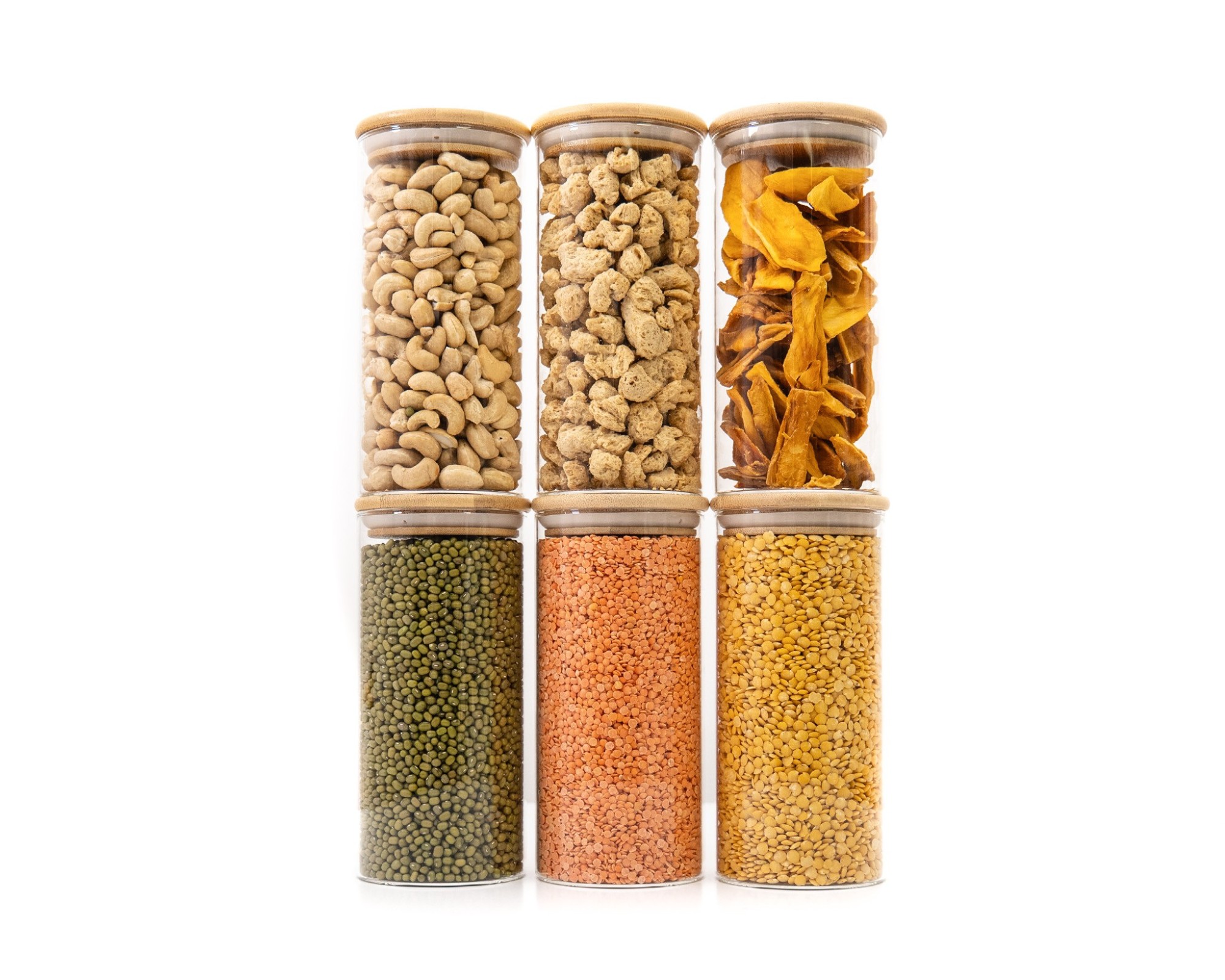 Stylish glass storage containers with round bamboo lids