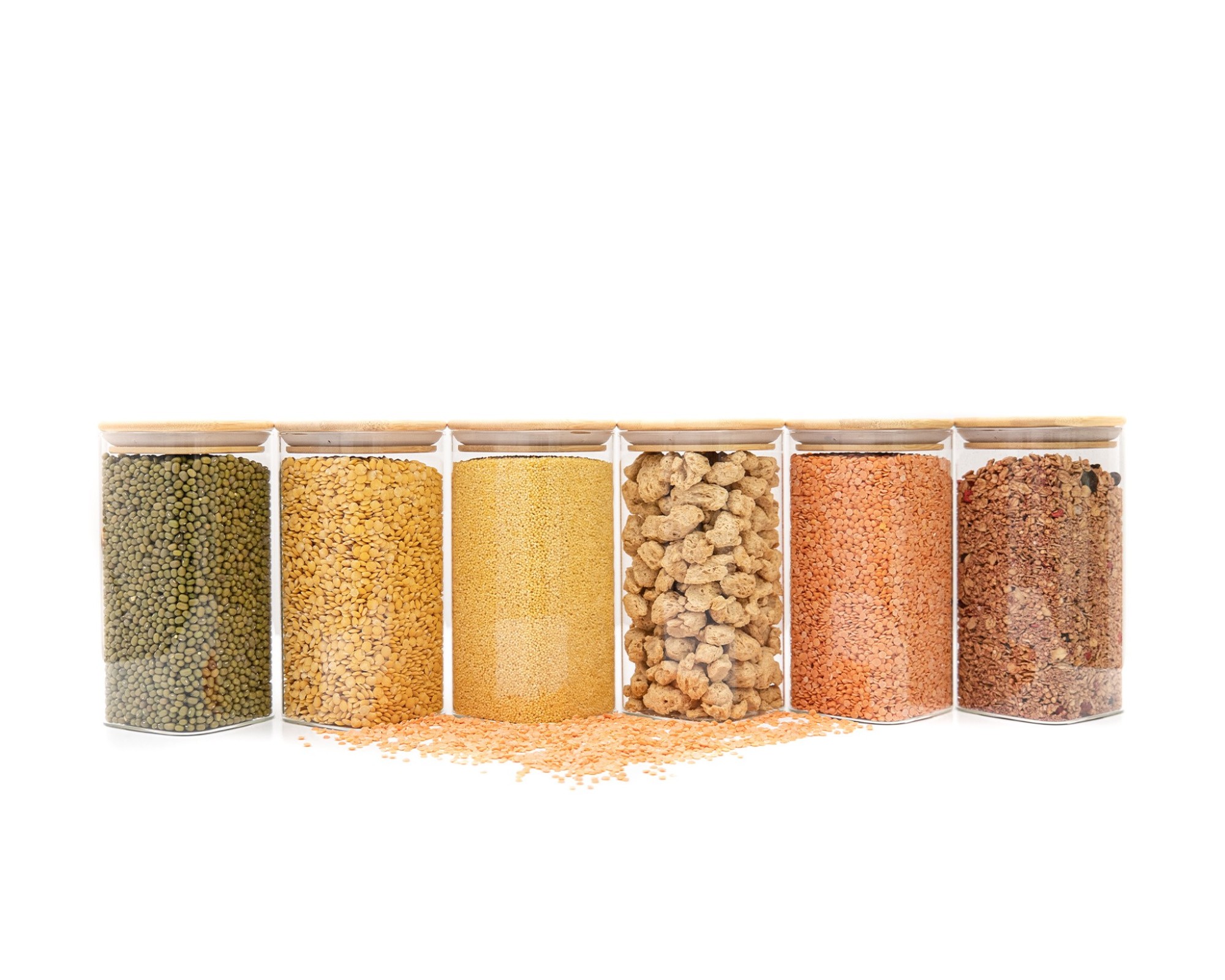 With these 6 square storage jars, each with a volume of 500ml, you can safely store your supplies all year round. The advantage of transparent storage jars is that you always know how your food is doing. Through the