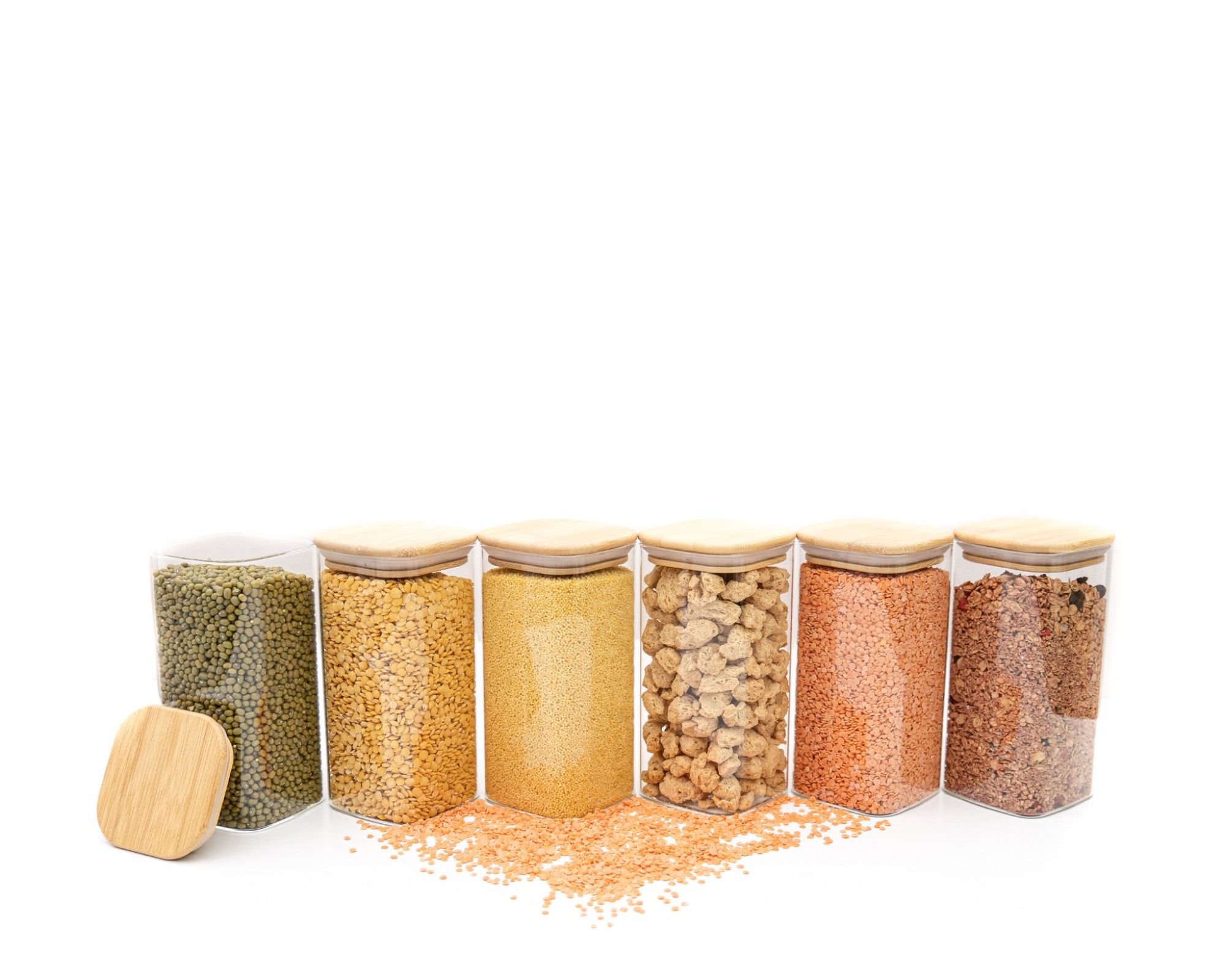 Stylish glass storage containers with square bamboo lids
