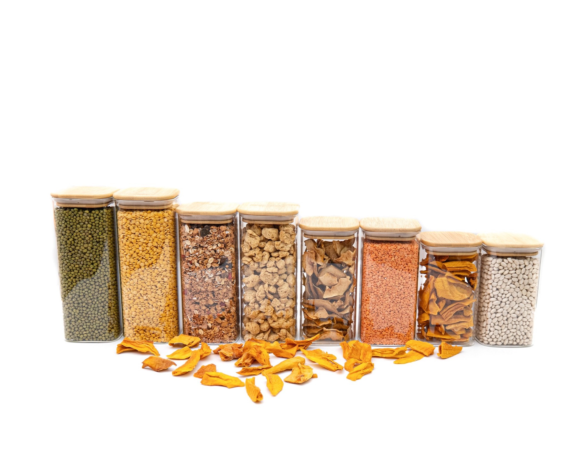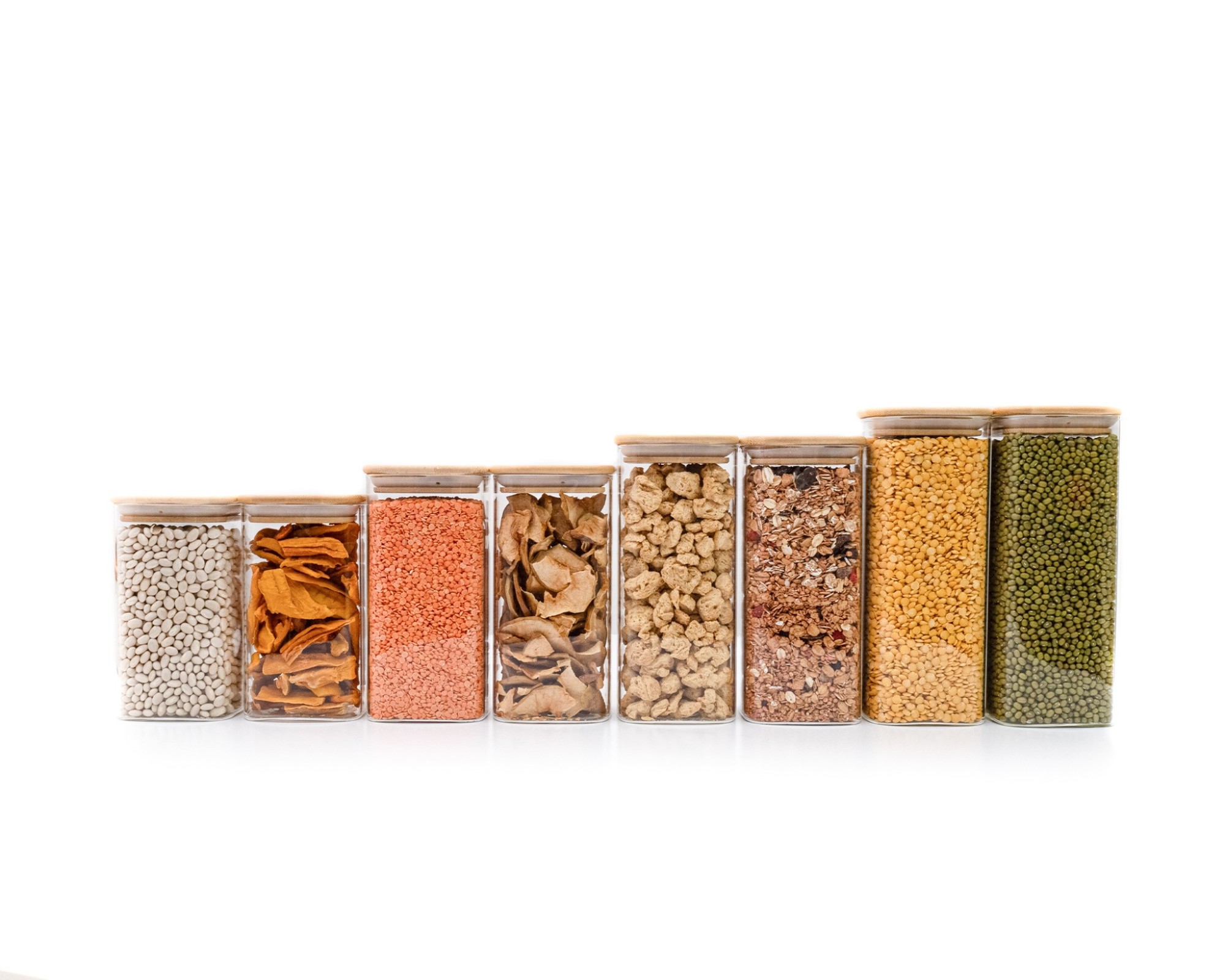 I barattoli per la conservazione sono realizzati in vetro e bambù