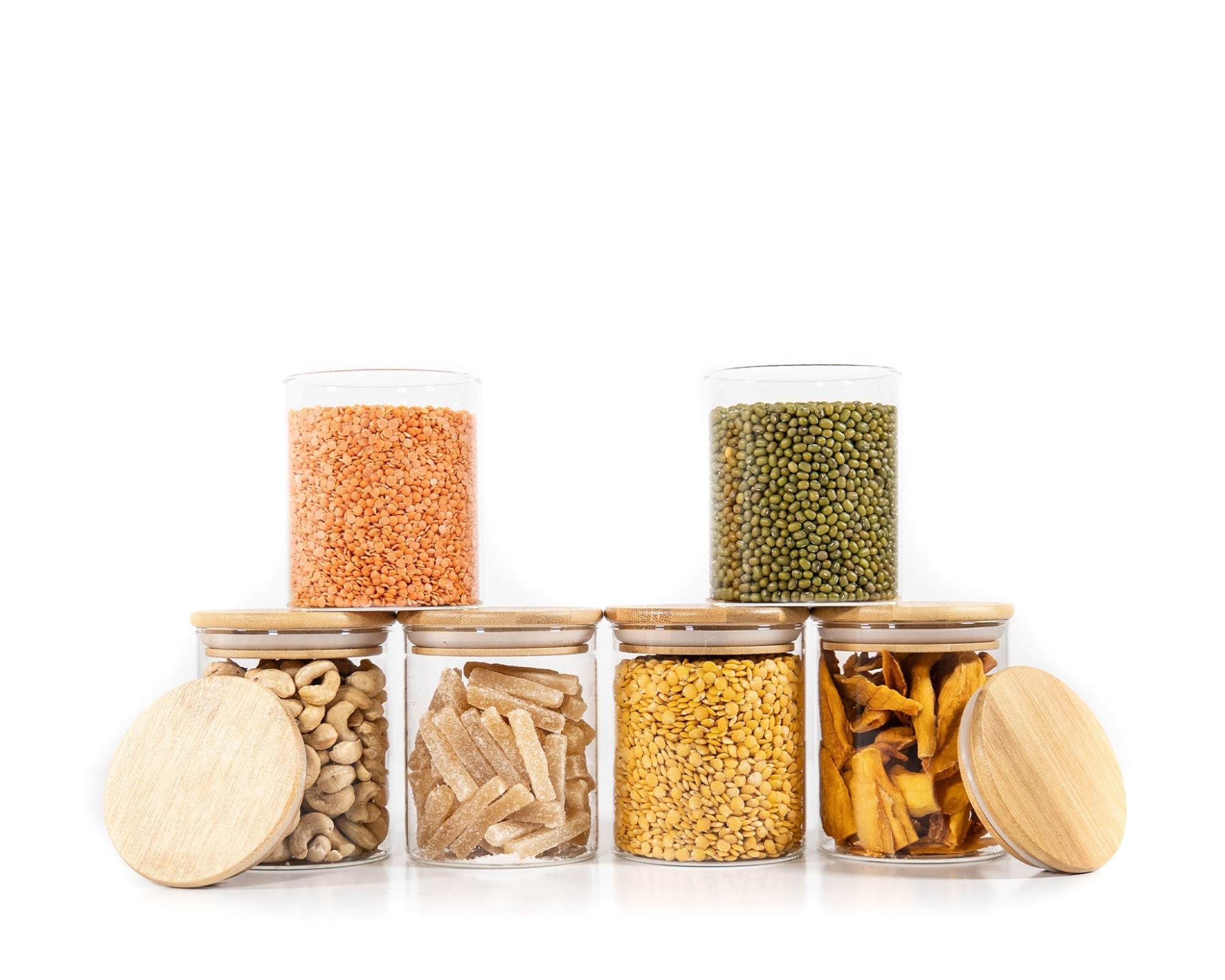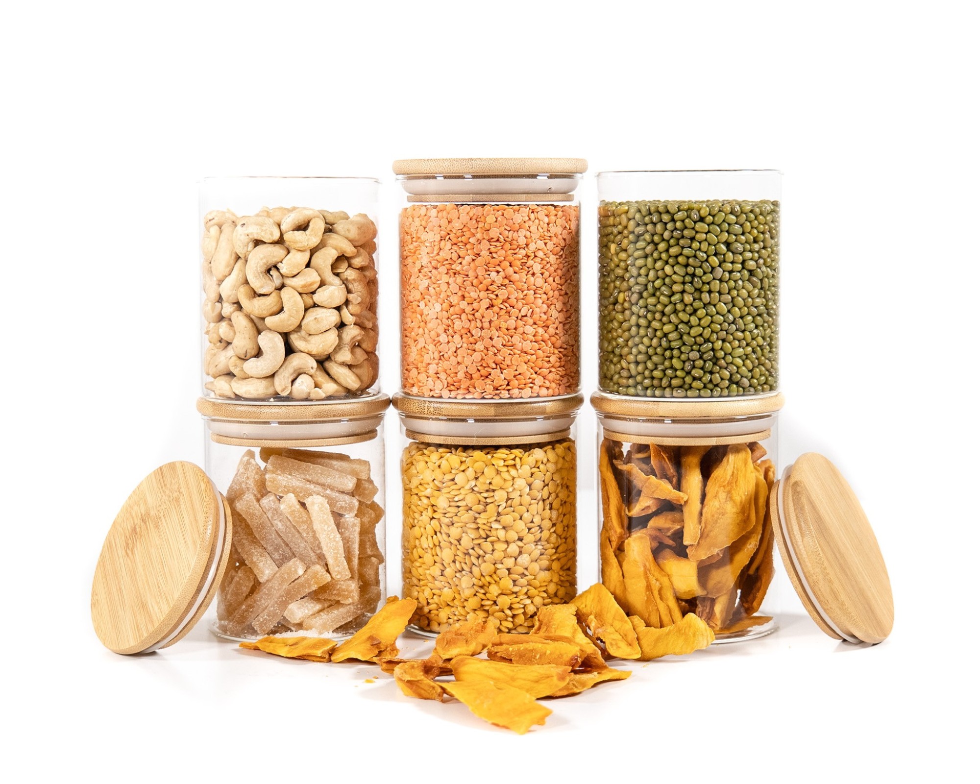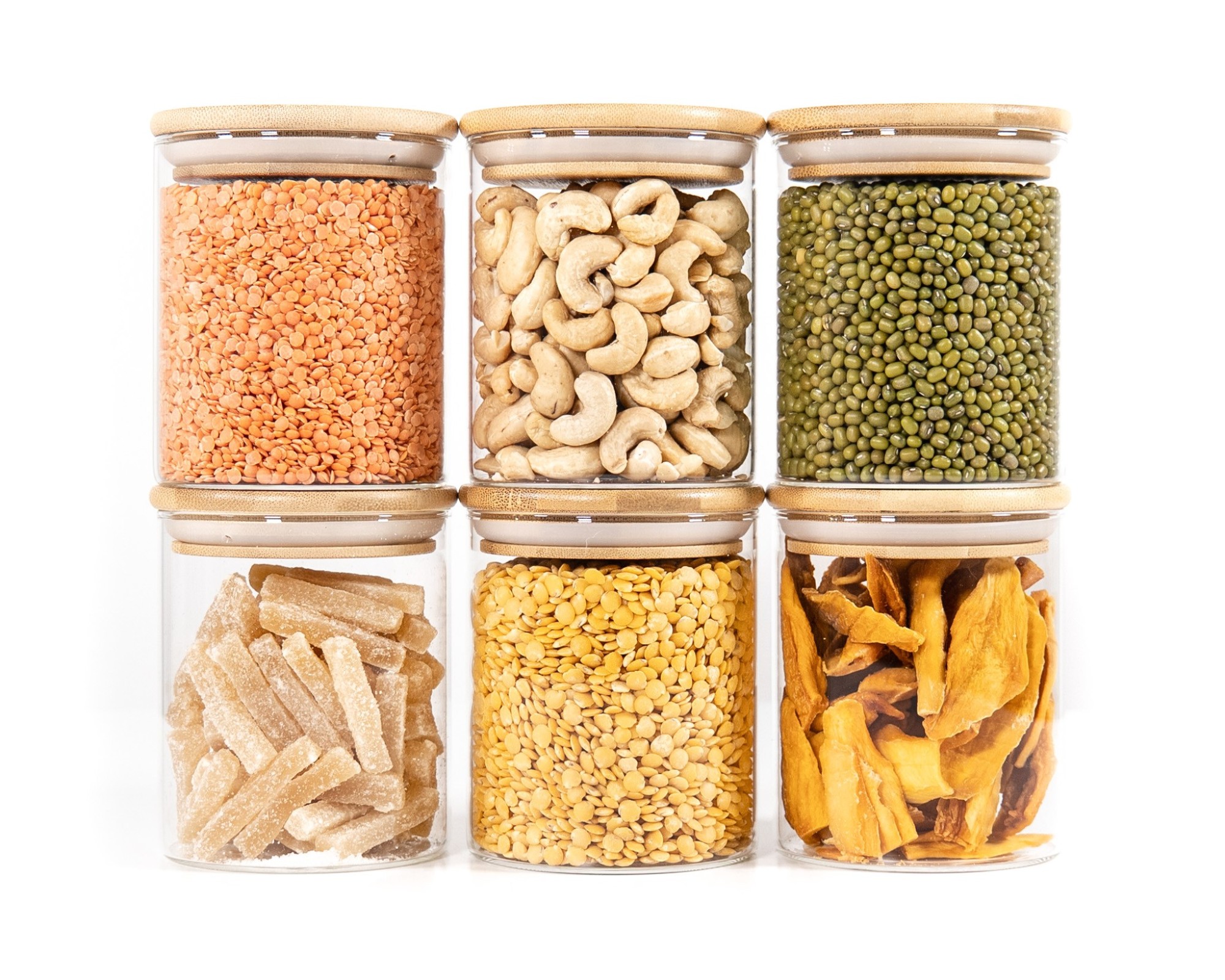 I barattoli per la conservazione sono realizzati in vetro e bambù