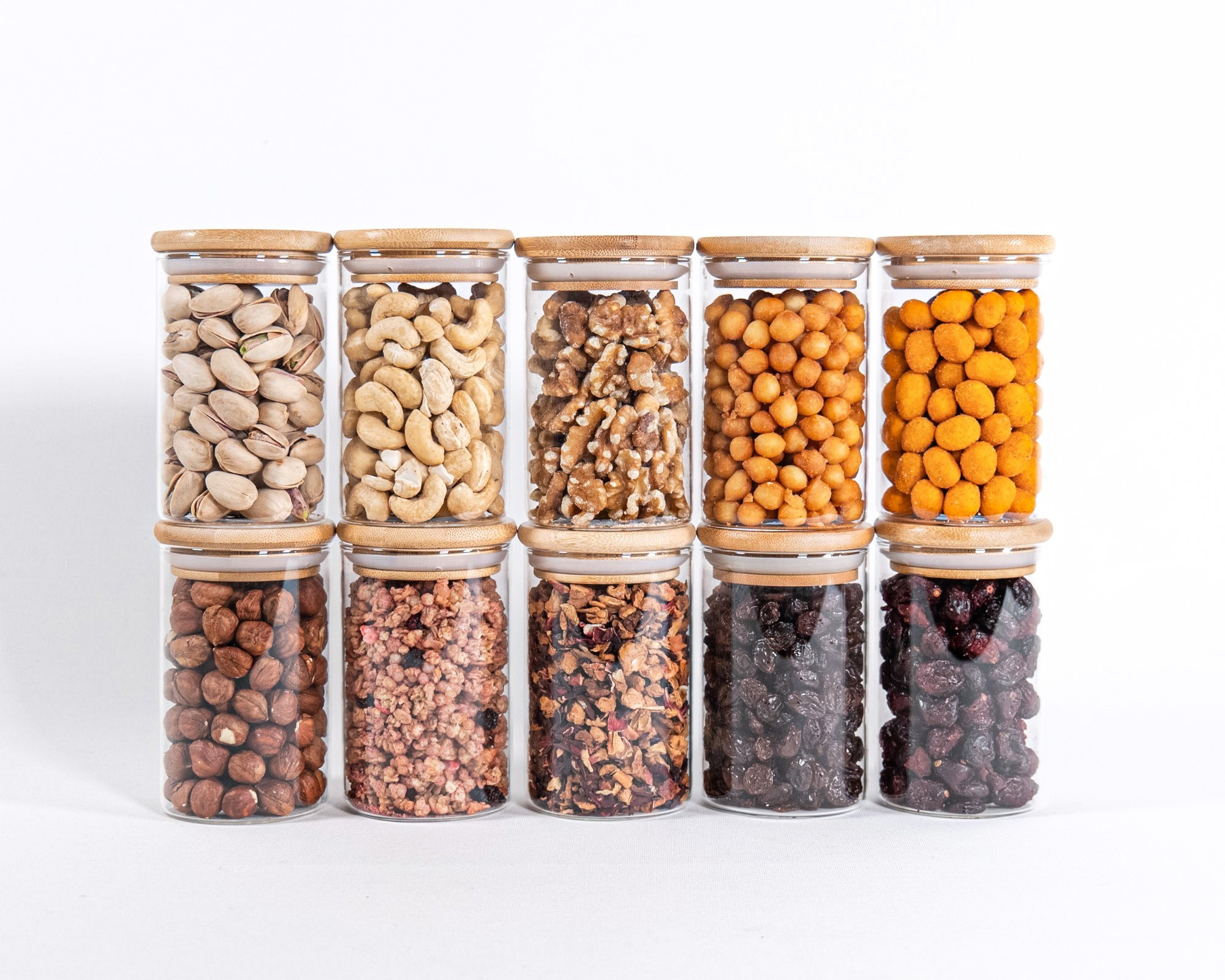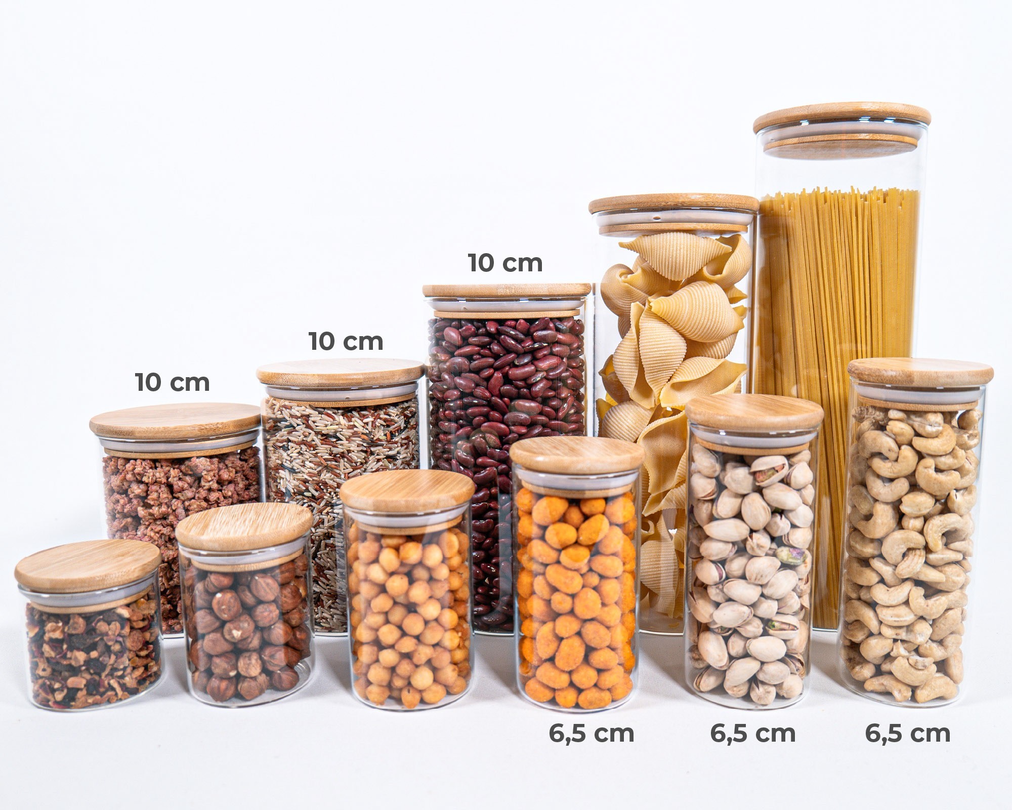 Stretto vetro di stoccaggio 10 cm coperchio di bambù alto 10 set