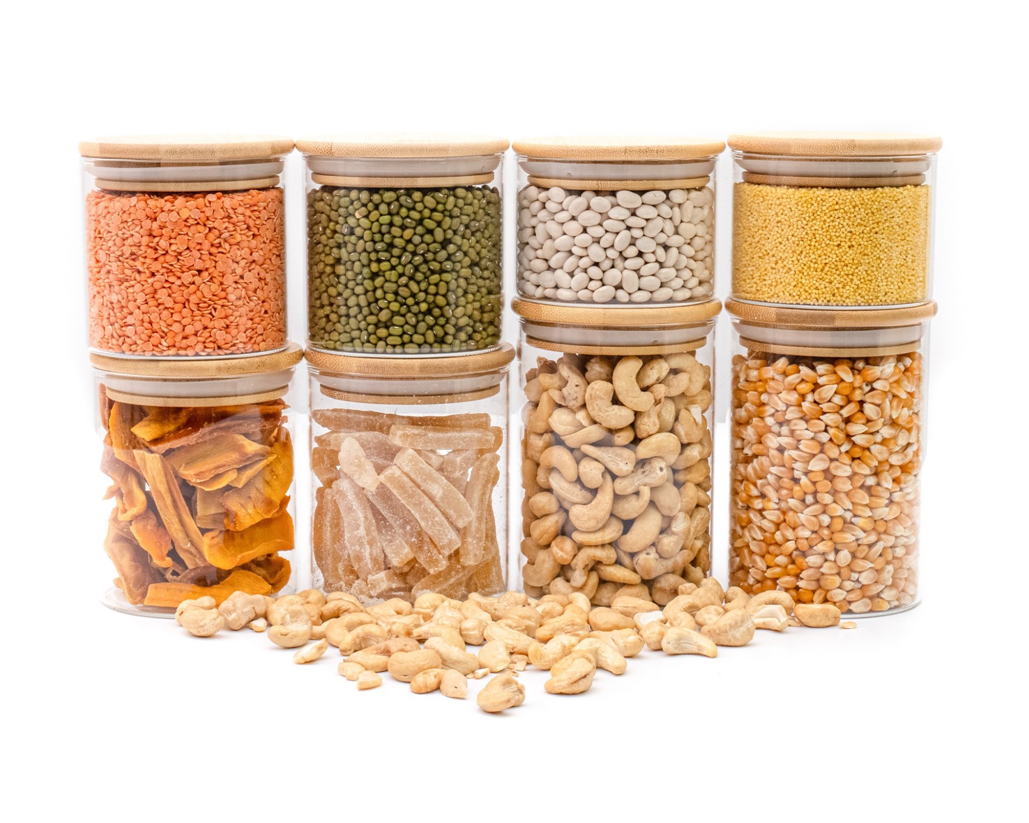 I barattoli per la conservazione sono realizzati in vetro e bambù