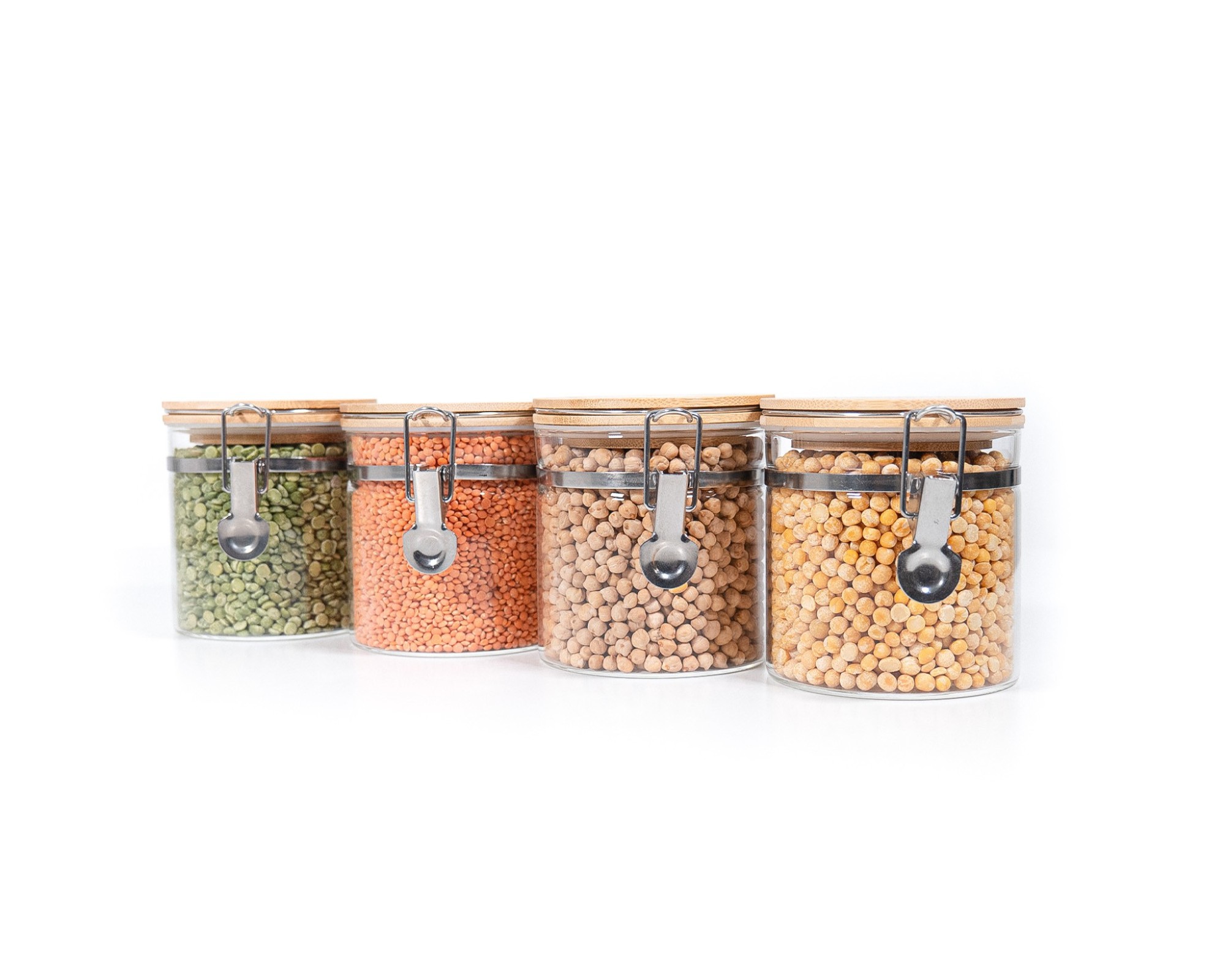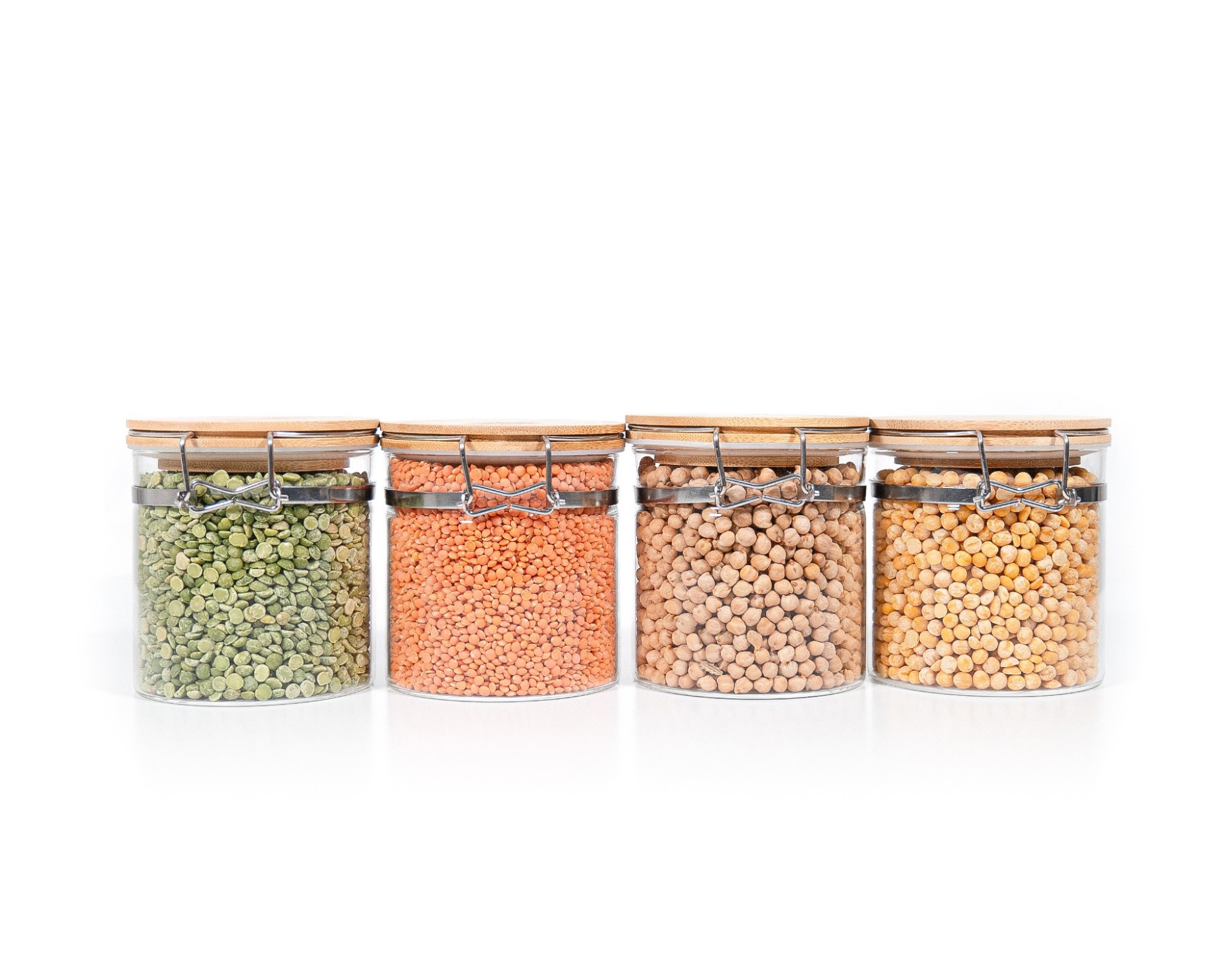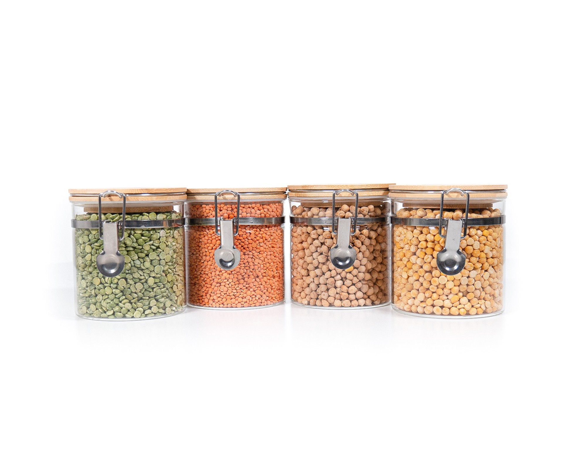 Barattoli per la conservazione con chiusura a clip e coperchio in bambù, set da 4, 750 ml