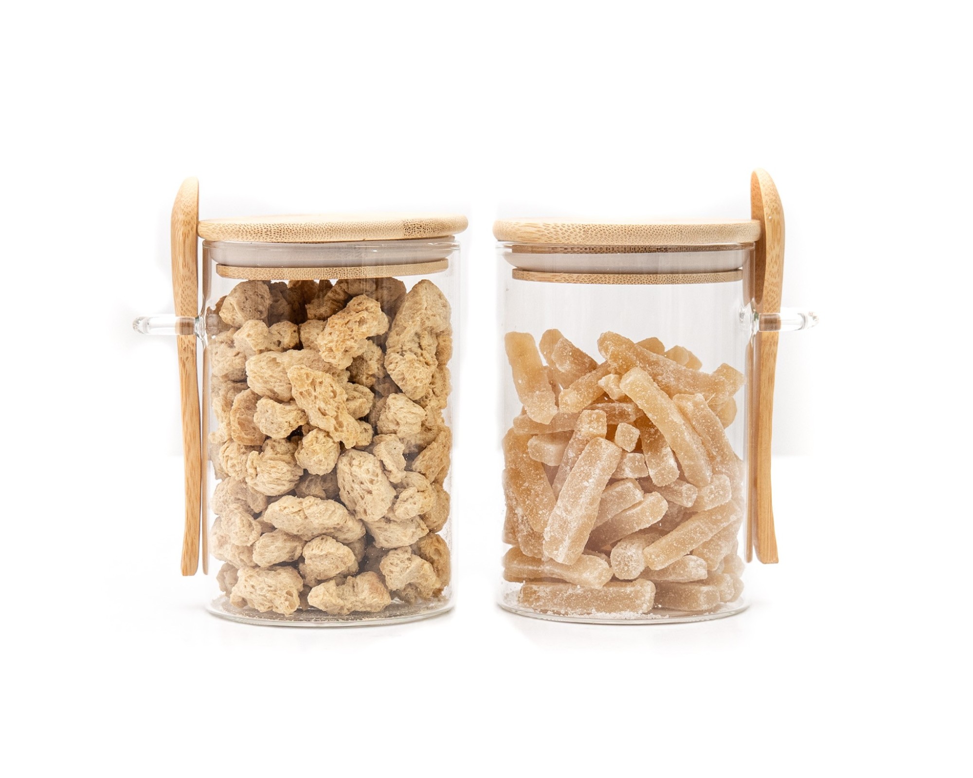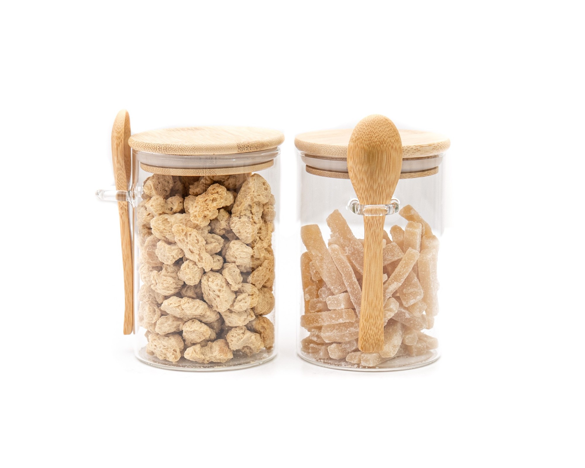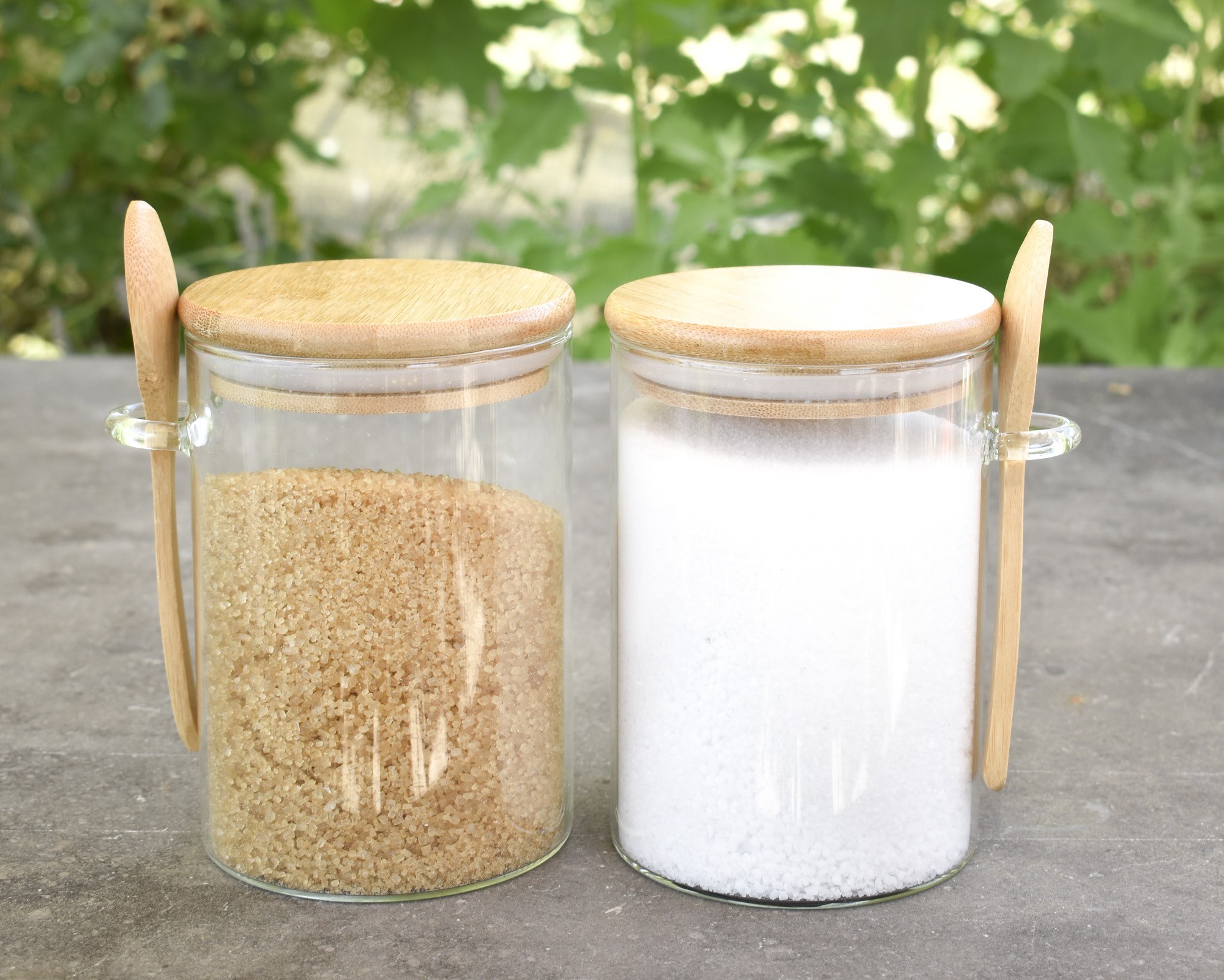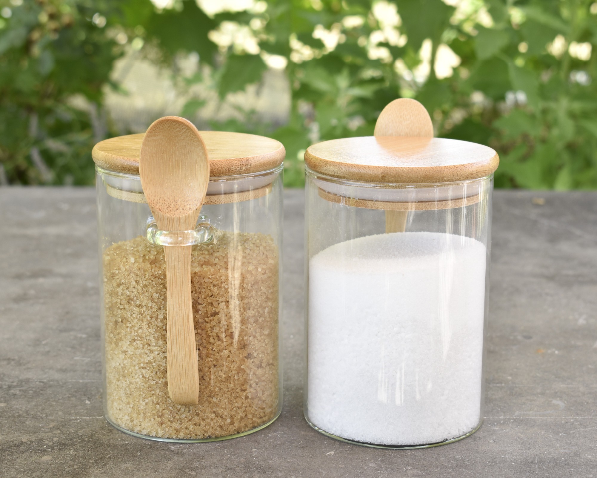 Barattoli per la conservazione con coperchio in bambù e cucchiaio, set da 2, quadrati