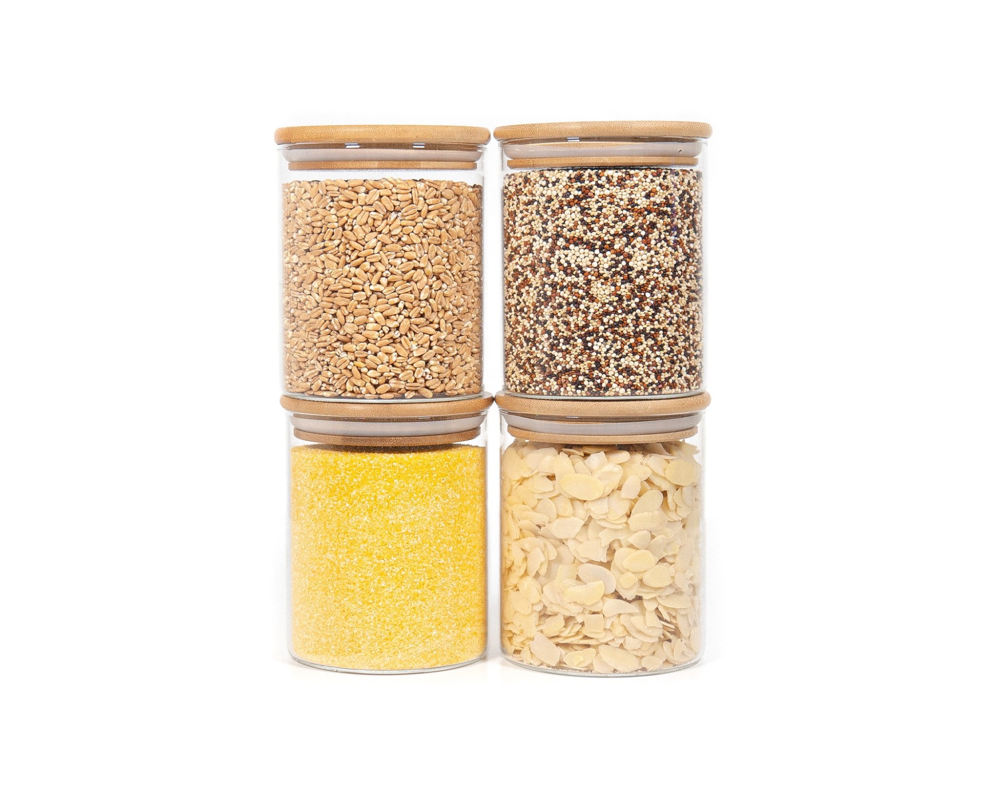 Vetro di stoccaggio rotondo con coperchio di bambù 4 set 1000 ml