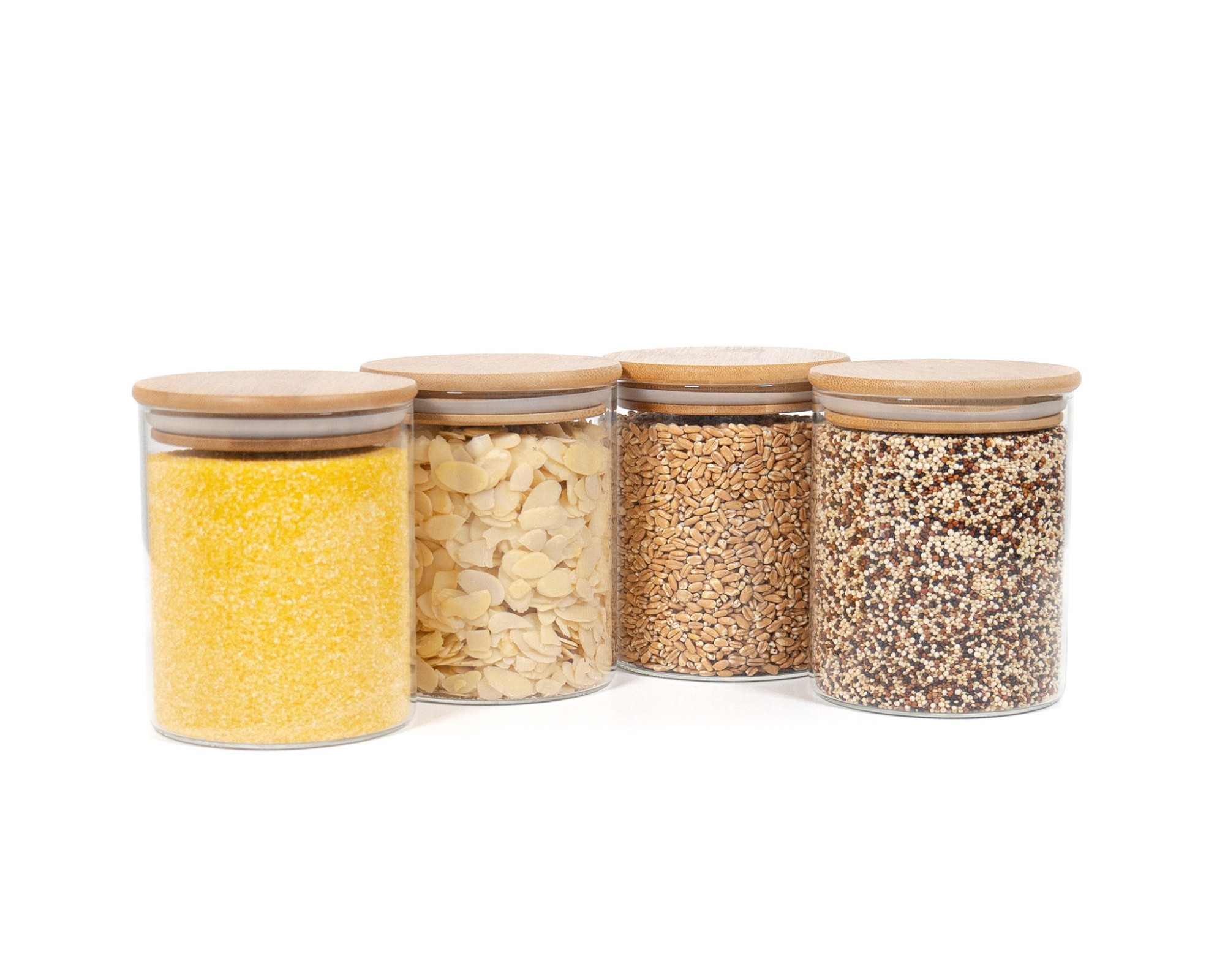 Vetro di stoccaggio rotondo con coperchio di bambù 4 set 800 ml
