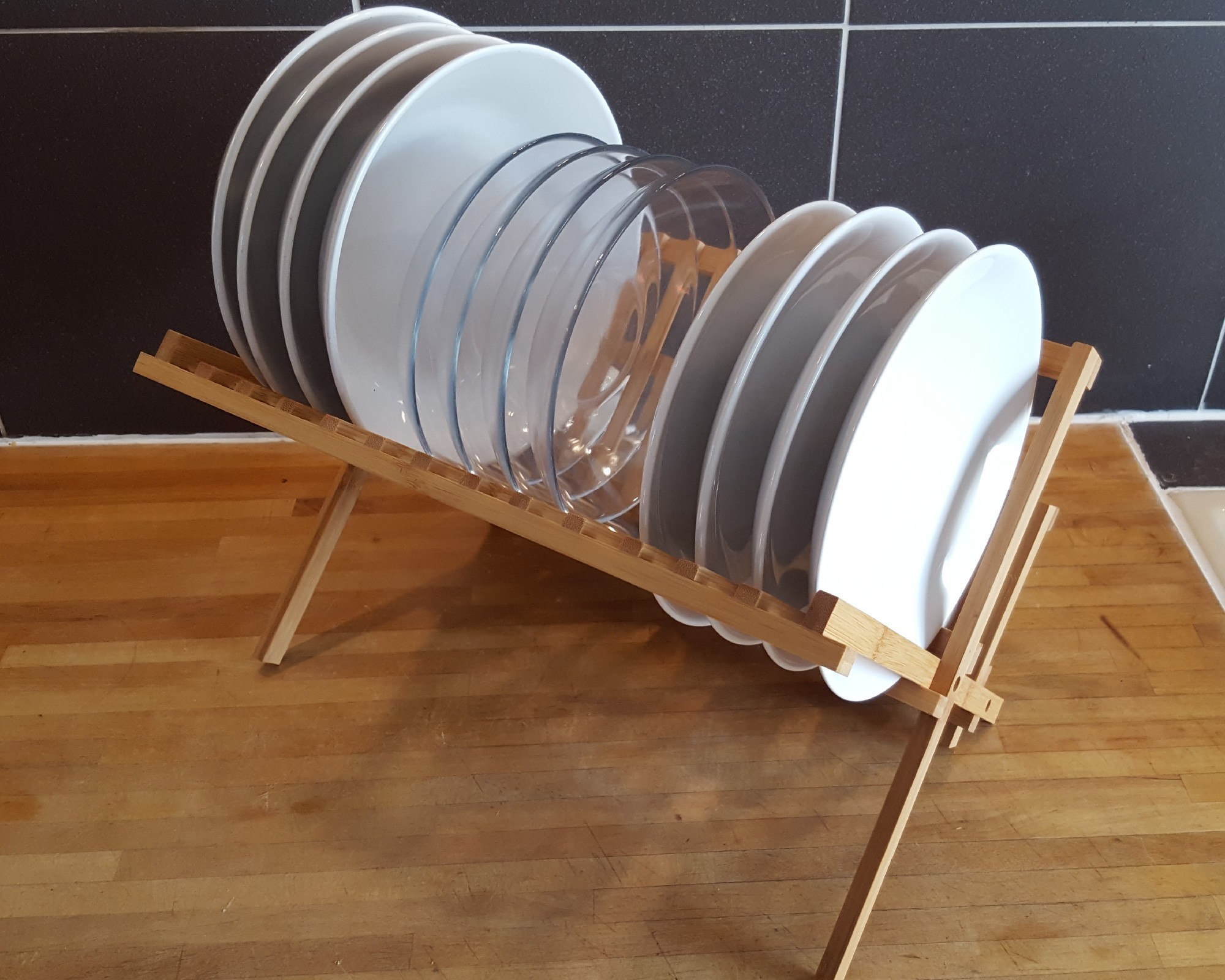 Das Gestell sieht schön aus und erfüllt seinen Zweck, aber es könnte etwas stabiler sein. Bei vielen Tellern wackelt es leicht. Für kleine Mengen Geschirr passt es, insgesamt also in Ordnung.