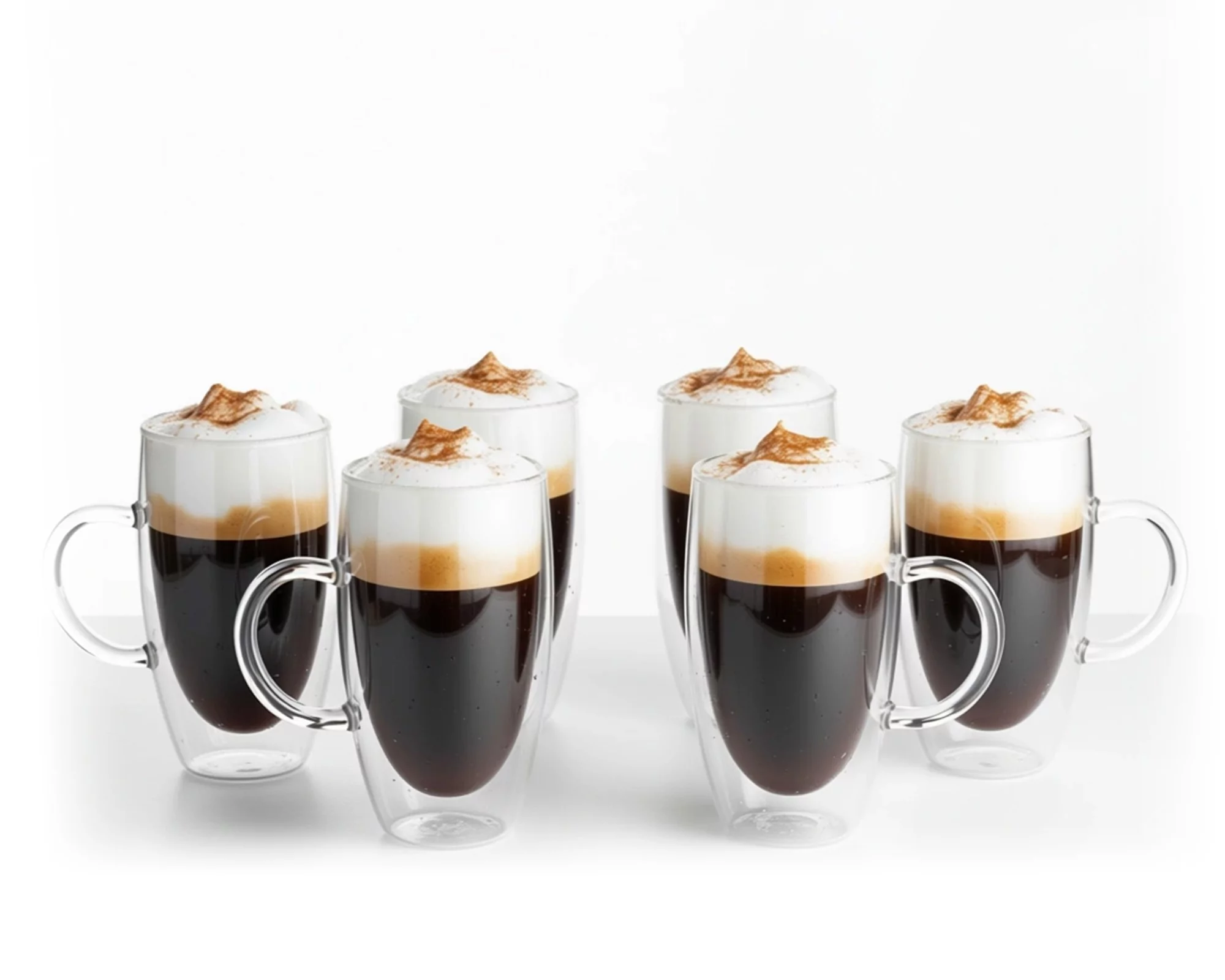 6 x 450ml doppelwandiges Kaffeeglas mit Henkel