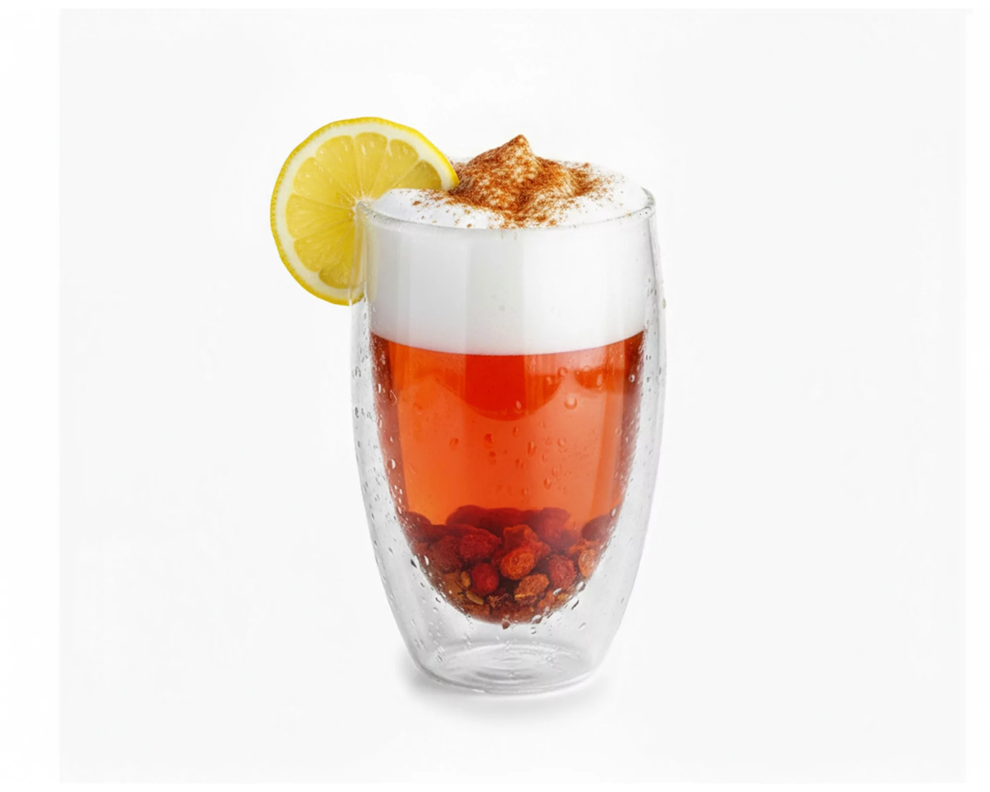 as doppelwandige Glas mit einer Kapazität von 450ml wurde aus Borosilikatglas mundgeblasen.
