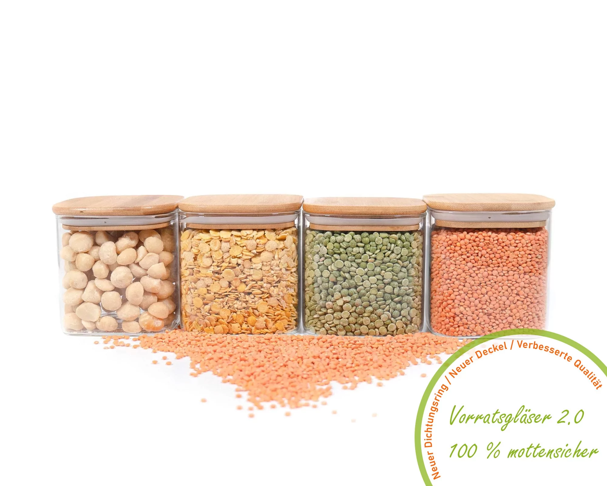 Quadratische Vorratsgläser mit Bambusdeckel 4er Set 800ml